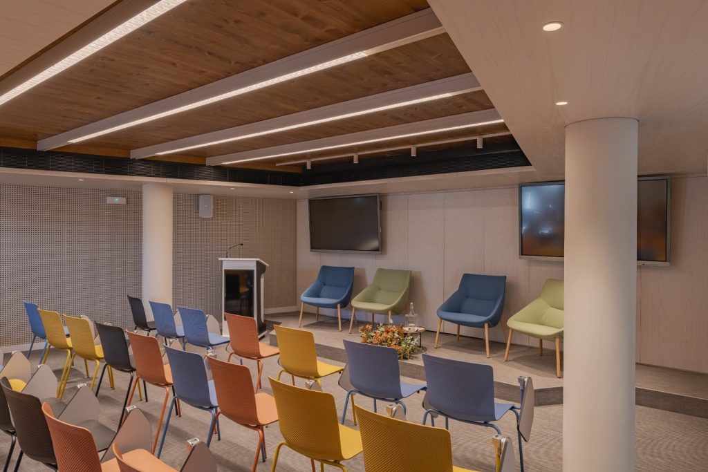 Málaga Dock Space, ubicado en la planta baja y entreplanta, ofrece capacidad para hasta cien personas, con aulas de formación, salas de reuniones, espacios de trabajo flexibles, áreas de descanso y acceso a una amplia variedad de servicios adicionales.